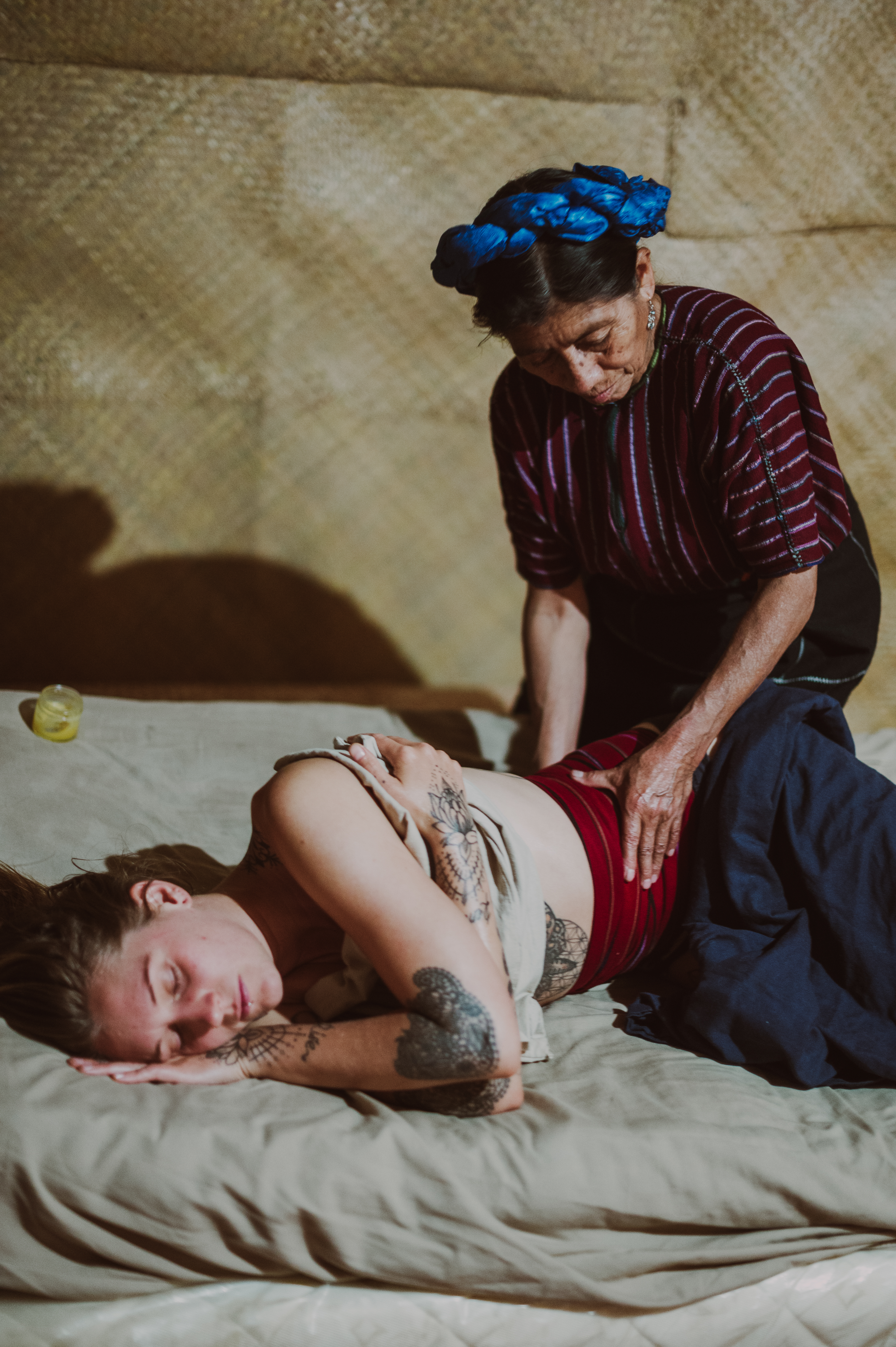 Every year, I return to Guatemala to learn from my traditional Maya midwife teachers. My connection with our weaver, Doña Dominga, and her family allows me to share handwoven fajas with our community — tools that are used with intention, ceremony, and care.